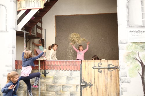 Unsere Heuhüpfburg ist für Kinder immer ein besonderes Highlight! Einfach mal im Heu springen und toben! Oder von der Empore reinspringen.
